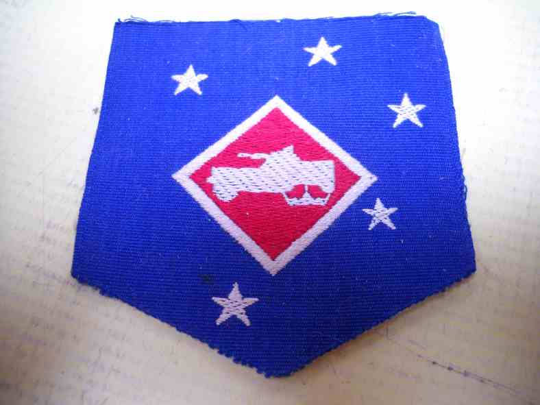 The half-track-line symbol in this patch is that of the 1st Marine Amphibious Corps – Tank Destroyer unit (source: Snyder’s Treasures).