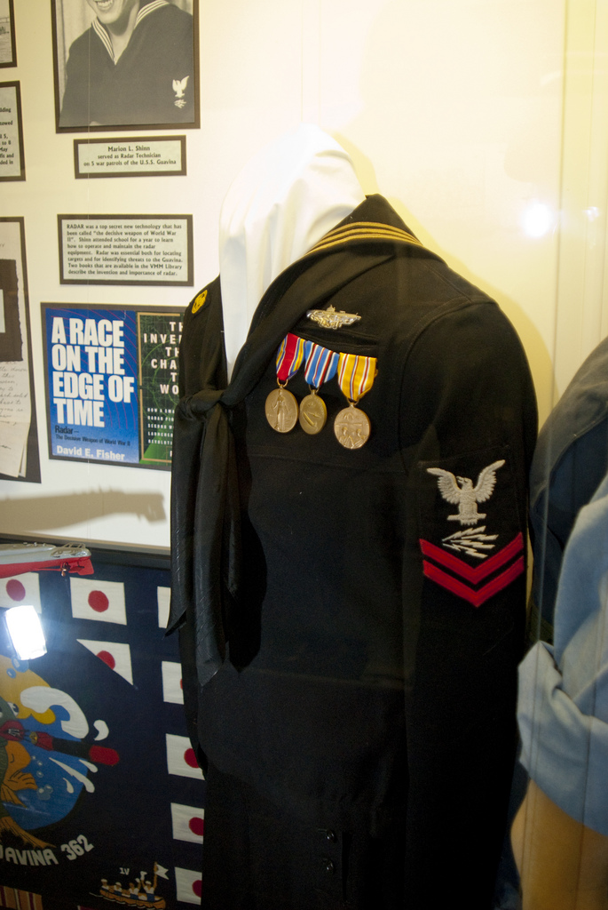 While this particular uniform group (of a WWII radioman 2/c submariner) is on display at a museum, I know of several collectors who have their collections displayed in similar, well-executed arrangements.