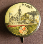 - This rare pin calls for Americans to avenge the sinking of the Maine (source: eBay image).