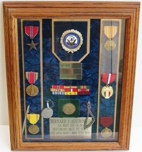 This group of medals from a USS Enterprise veteran largely contains modern hardware. The dog tags appear to be original to the veteran (source: eBay image).
