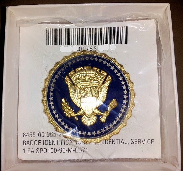 Superseding the WHSB in 1964 was the Presidential Service Badge. The badge was a slight departure from the WHSB, changing the field from white to blue and adding a ring of white, 5-pointed stars around the field’s inner circumference. Each PSB is individually and uniquely numbered. Each number is associated to the person to whom that individual badge was issued, making each one trackable. The PSBs come with a three-prong clutch-back to affix it to the wearers’ left breast pocket.