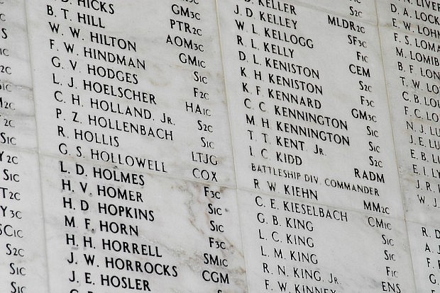 Inside the Arizona Memorial, this wall bears the names of the 1,177 victims who were killed on that tragic day.