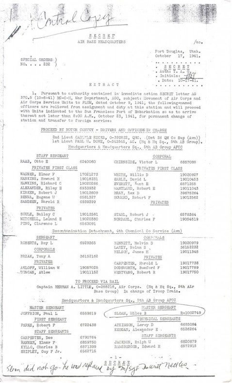 5th Air Base Group Transfer Order