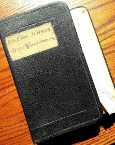 This binder is labeled with the name of the owner (Chief Electrician Knaus) for the USS Vincennes. It was used during the ship’s overhaul in 1939. I still need to research Chief Knaus to see if I can locate any details of his service.