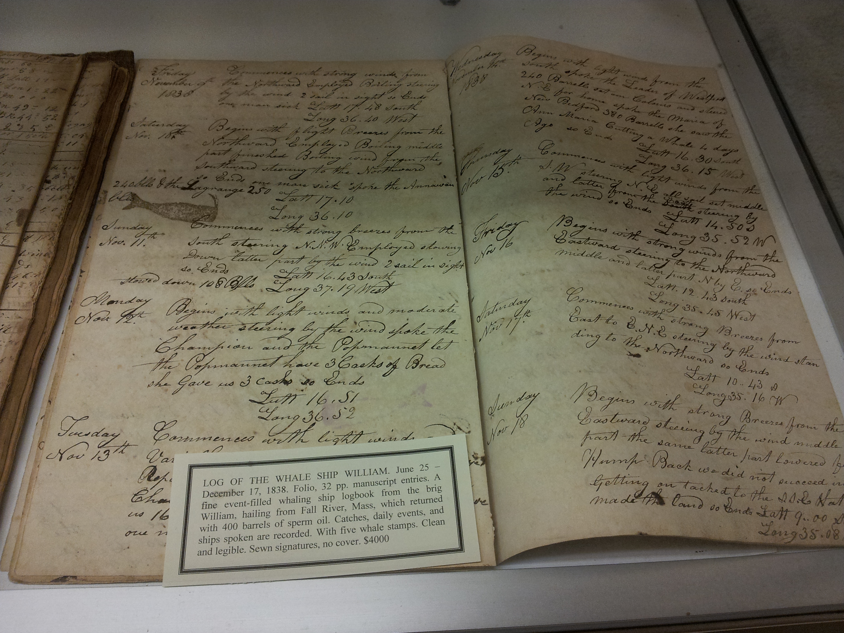 1838 Whale Ship Log from the William