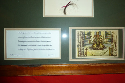 Showing the orientation of the lock of hair, the original purchaser’s provenance note and the vintage postcard of Jones’ Naval Academy crypt (source: eBay image).