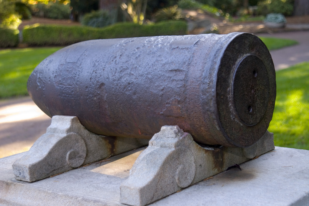 This 10-inch naval gun projectile was recovered from the wreck of the USS Maine and placed here to serve as a reminder of those who were lost during the Spanish American War.