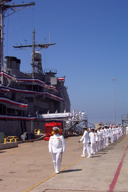 Vincennes’ skeleton crew disembarks the ship and brings about her end as an active warship.