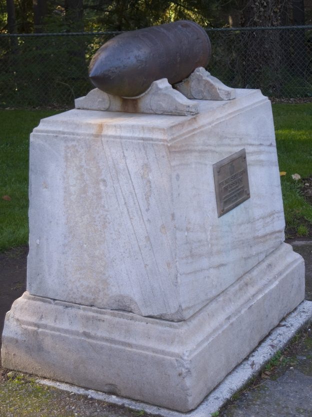 Placed more than a century ago, this monument is largely ignored by local citizenry though the artifact on display was taken from the wreck of one of the most recognizable ships in US history.