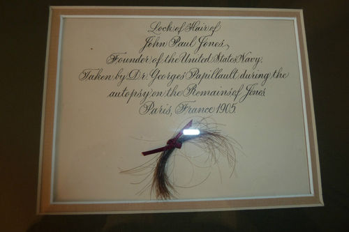“Lock of hair of John Paul Jones, founder of the United States Navy. Taken by Dr. Georges Papillault during the autopsy on the remains of Jones. Paris, France 1905” (source: eBay image).