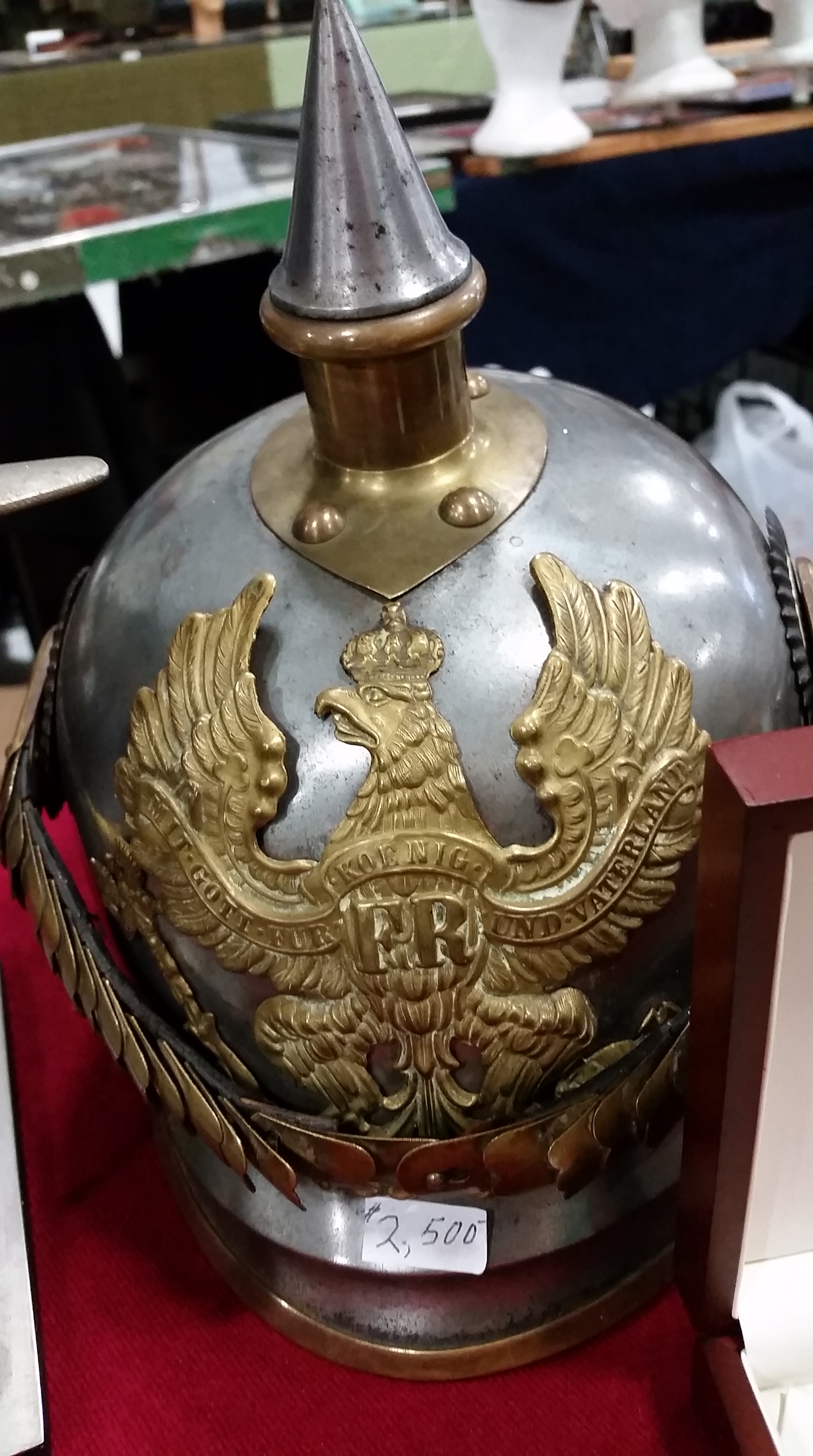 For a mere $2,500, one could take this beautifully dressed Imperial German spike helmet home.