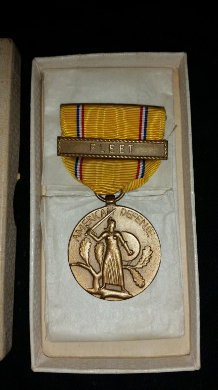 USS Vincennes crewman, F3/c Charles Findlay was issued this American Defense Service Medal with the “Fleet” clasp.