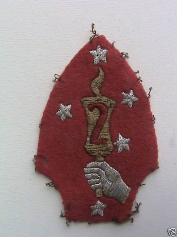 One of the popular patch backing materials (for both collectors and moths) is wool as seen on this 2nd Marine Division patch (source: USMF).