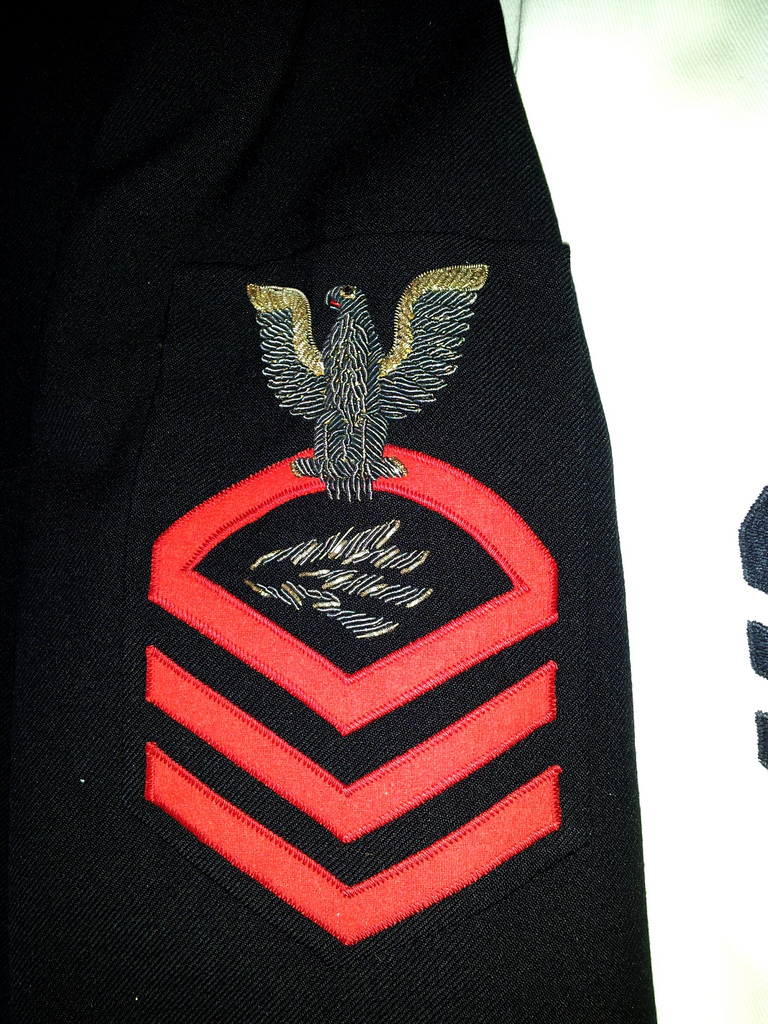 This Radioman Chief’s eagle is accented with gold thread on the leading edges of the wings.