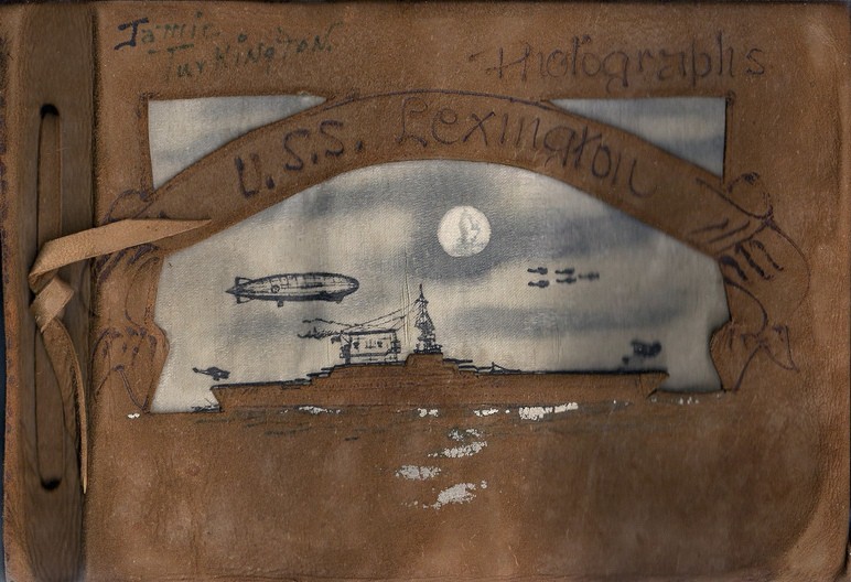 A sailor’s leather-bound USS Lexington CV-2 Photo album (photo: eBay).