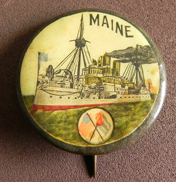 More subdued, the message is still clear with regards to the Maine’s sinking. Note the crossed American and Cuban flags (source: eBay image).