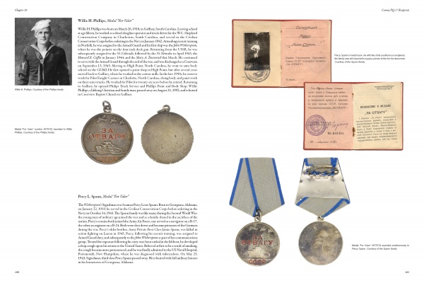 A sample page from Schwind’s work, Blue Seas, Red Stars: Soviet Military Medals to U.S. Sea Service Recipients in World War II (image source: Schiffer Publishing).