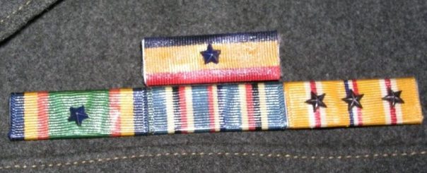 - A custom, fully-embroidered ribbon rack that was made after the Korean War was worn by an aviator features a blue star on the PUC (image source: U.S. Militaria Forum).