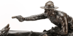Proctor’s sculpture featured a cavalry trooper mounted atop a horse depicted in full gallop. The trooper, gripping the horse’s reins with his left hand, has his M1911 .45 caliber pistol drawn and leveled upon an unseen target. The bronze sculpture, titled “U.S. Cavalryman,” is mounted to a white marble pedestal with “Goodrich Riding Trophy” engraved into both sides.
