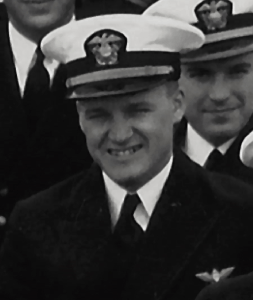 With Ramee’s next duty assignment listed as VP-44 (most-likely a detachment that was then stationed at Seattle, WA) in 1939, I was reminded of a 1938-dated photo that I acquired years ago showing the bulk of the USS Vincennes’ crew positioned and posed in the after section of the ship. The large print is so clear that one can discern faces for most of the visible men in the photo. Armed with a photo taken from the 1933 Lucky Bag, I began to zoom into each officer in search of the pilot. After a cursory pass, one man in particular kept drawing my attention. Glancing down at his chest, an aviator’s wing pin is affixed to his left chest. Obviously, there is more to the facial recognition practice than I have experience with, but I am fairly certain that the man in the USS Vincennes crew photo is John Ramee.