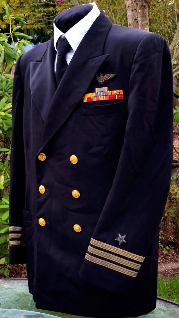 Note the ghosting of the (now removed) bullion naval aviators wings above Commander Ramee’s custom ribbon rack (see below for ribbon details).