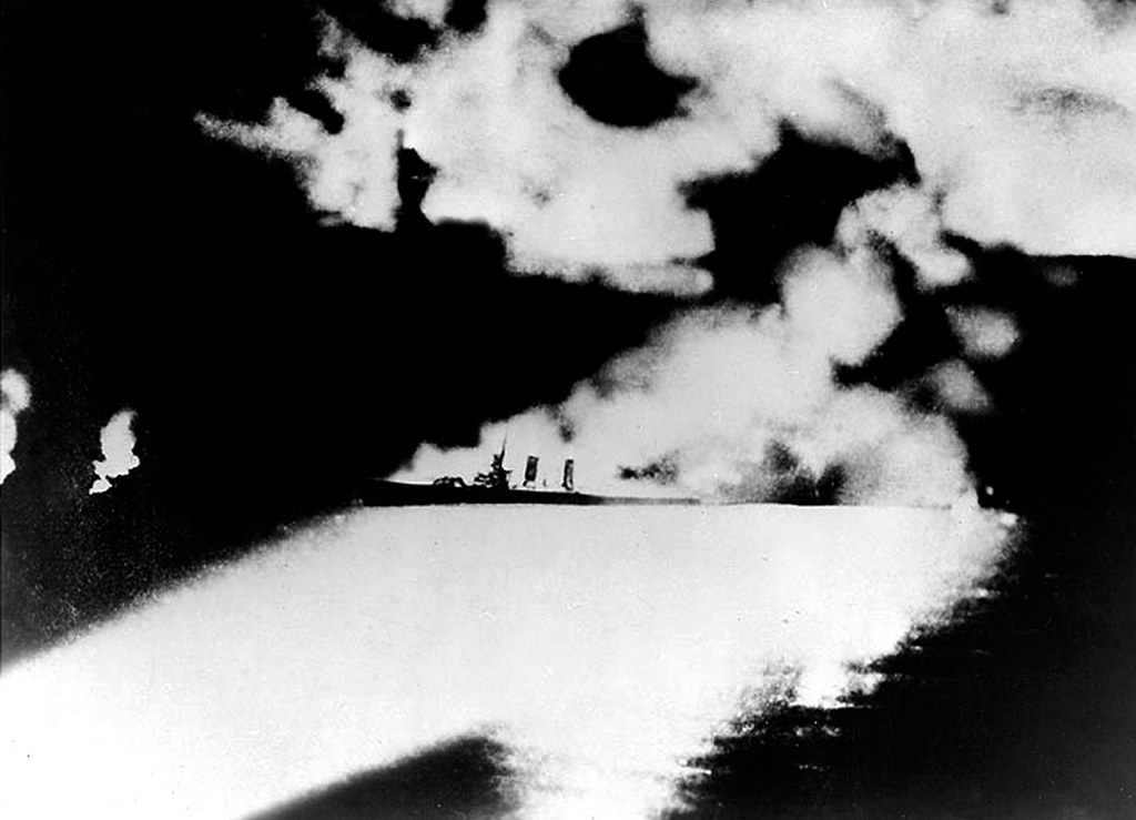Almost immediately as the enemy shells began to strike the ship, a pair of torpedoes fired from the Japanese cruiser Chōkai struck Vincennes and crippled her with heavy damage and flooding amidships. Fires broke out in the ship’s hangers as the four Curtis SOC scout planes along with the aviation fuel stores giving the enemy gunners a perfectly illuminated target. “Another direct hit and all lights went out. Shells and torpedoes, meanwhile, were coming fast. Number one fire room was hit directly after (to the rear) of us,” Schneller recalled the enemy onslaught, months later.