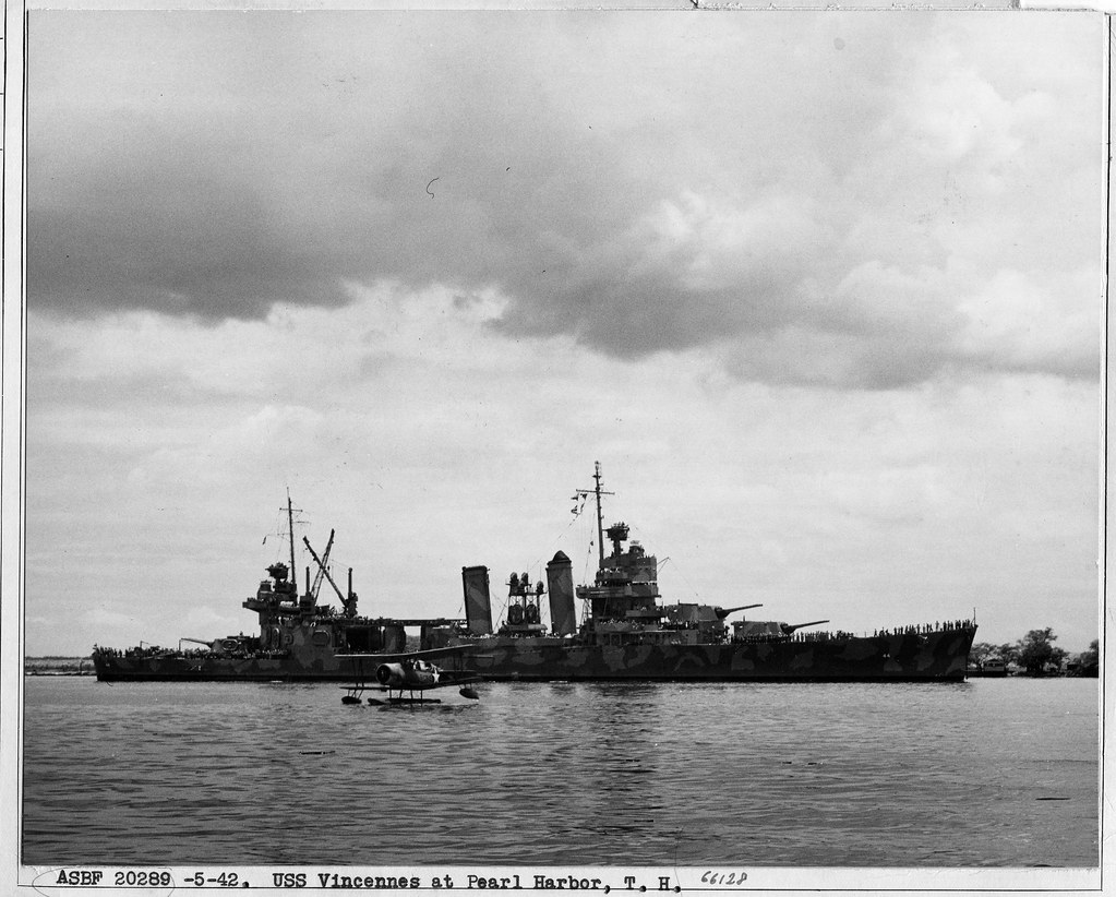 Commissioned in 1937, the New Orleans Class heavy cruiser (classified as such due to her main battery consisting of eight inch guns) USS Vincennes (CA-44) plied the peacetime seas for more than four years before the Japanese attack on Pearl Harbor on December 7, 1941. Despite the elapsed time since she was placed into service, many of her crew at the start of World War II were plankowners (they were part of the original crew, present at the time of commissioning) though personnel turnover was occurring and a steady rate. New crew members were replacing veterans whose enlistments were ending or were rotating to different commands. Wartime manning requirements, impacted by combat operations, increased for many vessels by as much as twenty percent.