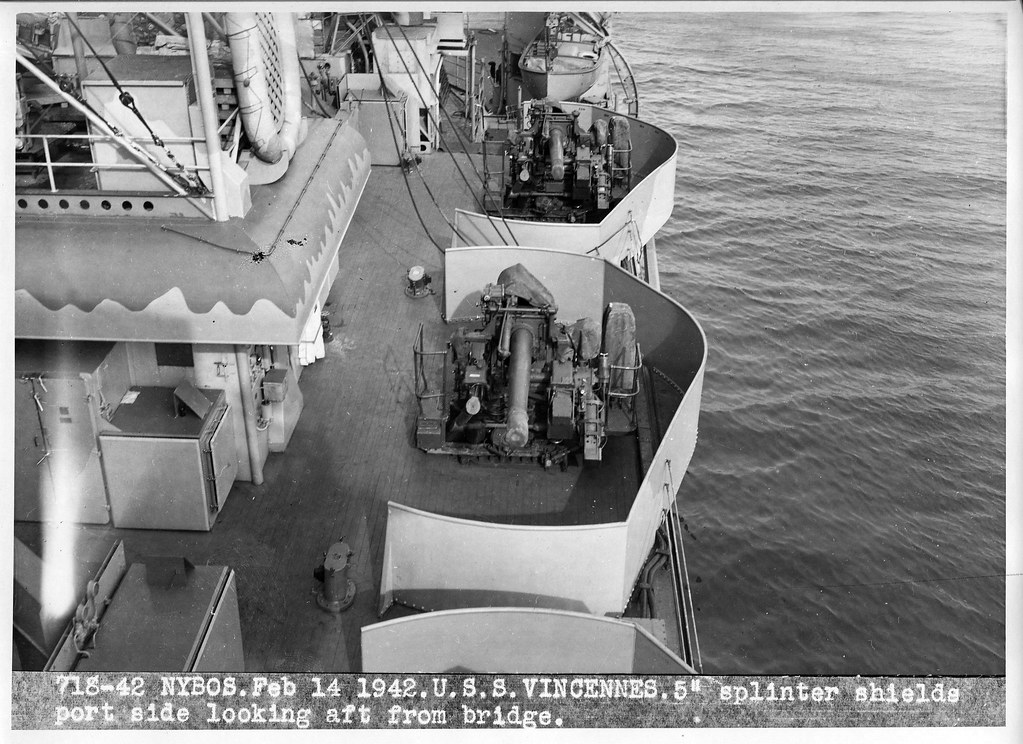 On February 12, 1941, Gunner McKinney reported aboard CA-44, USS Vincennes, and was assigned to one of the ship’s eight 5-inch gun mounts.