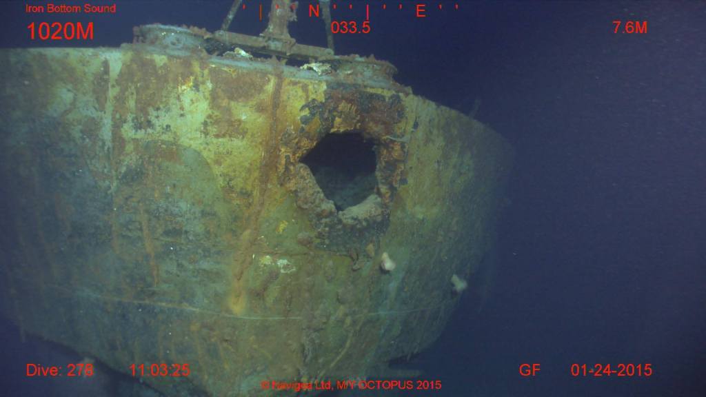 Gunner John Harris McKinney has been at rest with his shipmates at what today is known as Iron Bottom Sound nearly 3,500-feet beneath the surface. In January 2015, the Paul Allen-fund Research Vessel Petrel located and photographed the wreck of USS Vincennes (CA-44) and documented how she came to rest on the sea floor. One of the most poignant images captured by the Petrel crew showed one of Vincennes’ 5-inch guns still trained as if her crew were ready to send another round toward the enemy.
