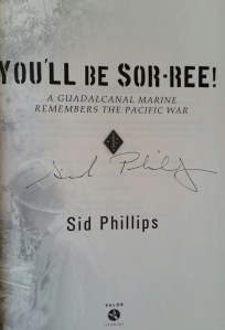 Though he didn’t earn a valor medal for his service in the USMC during WWII, his personal accounts (told in both Ken Burns’ “The War” and Tom Hanks’ “The Pacific” television series) were remarkable. I was happy to receive his signed WWII memoir.