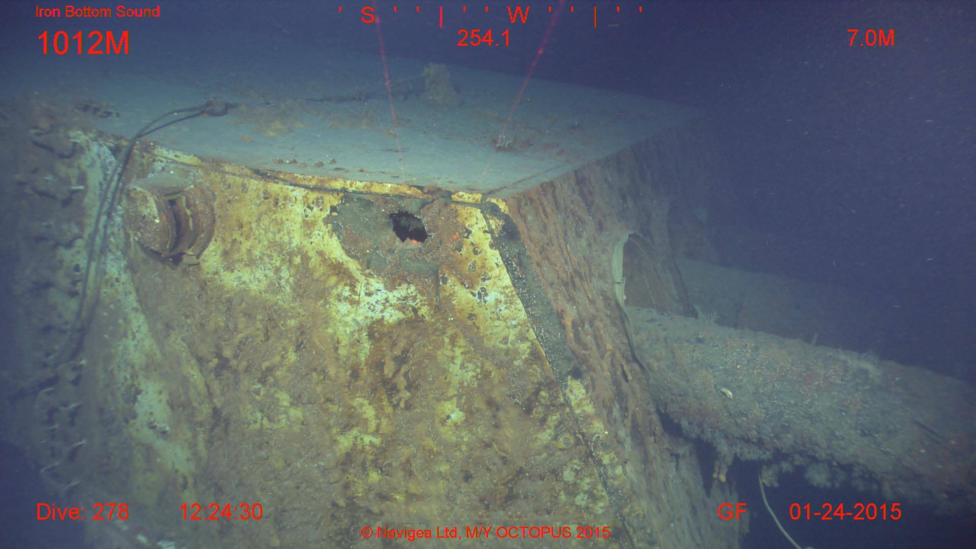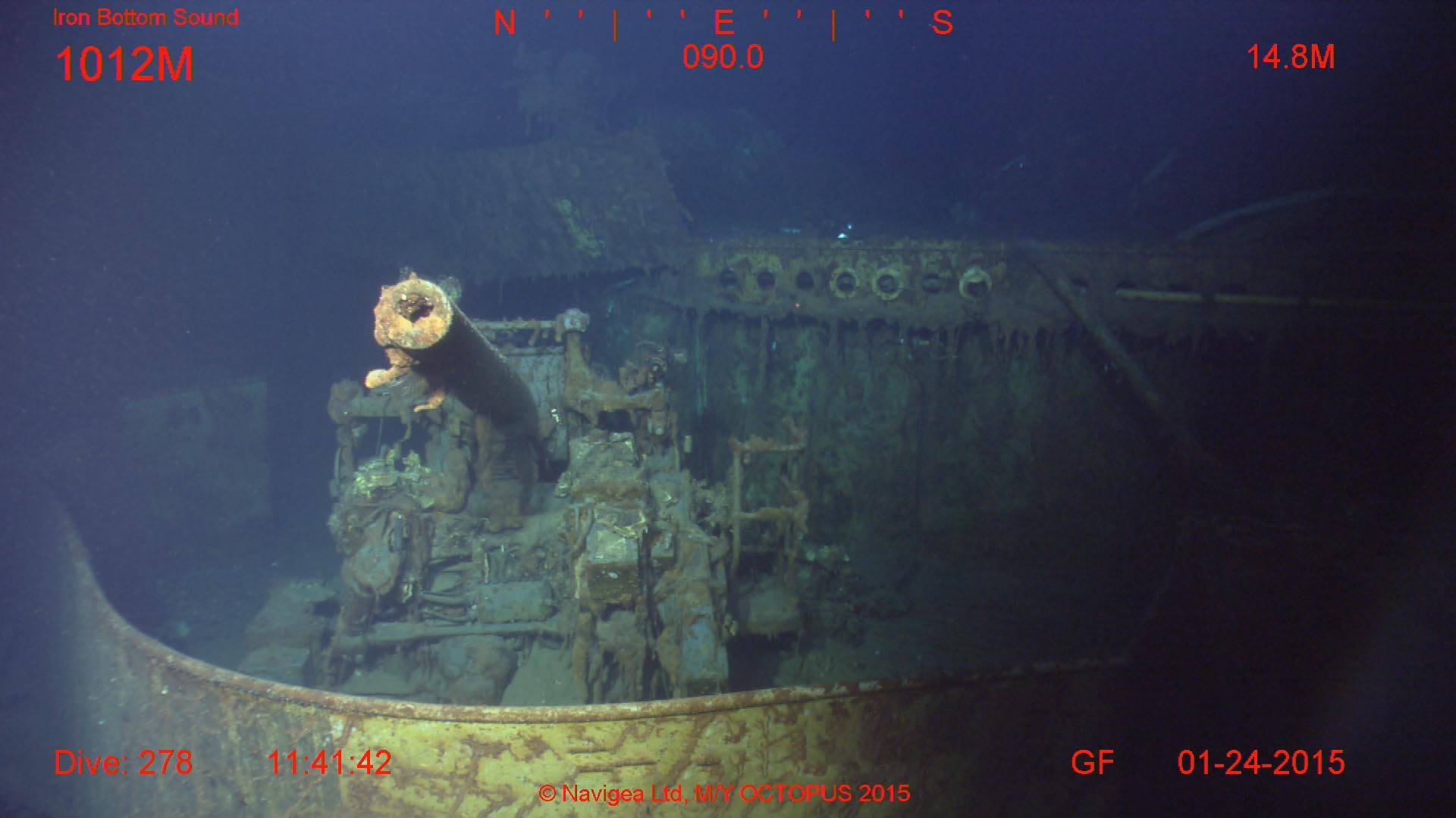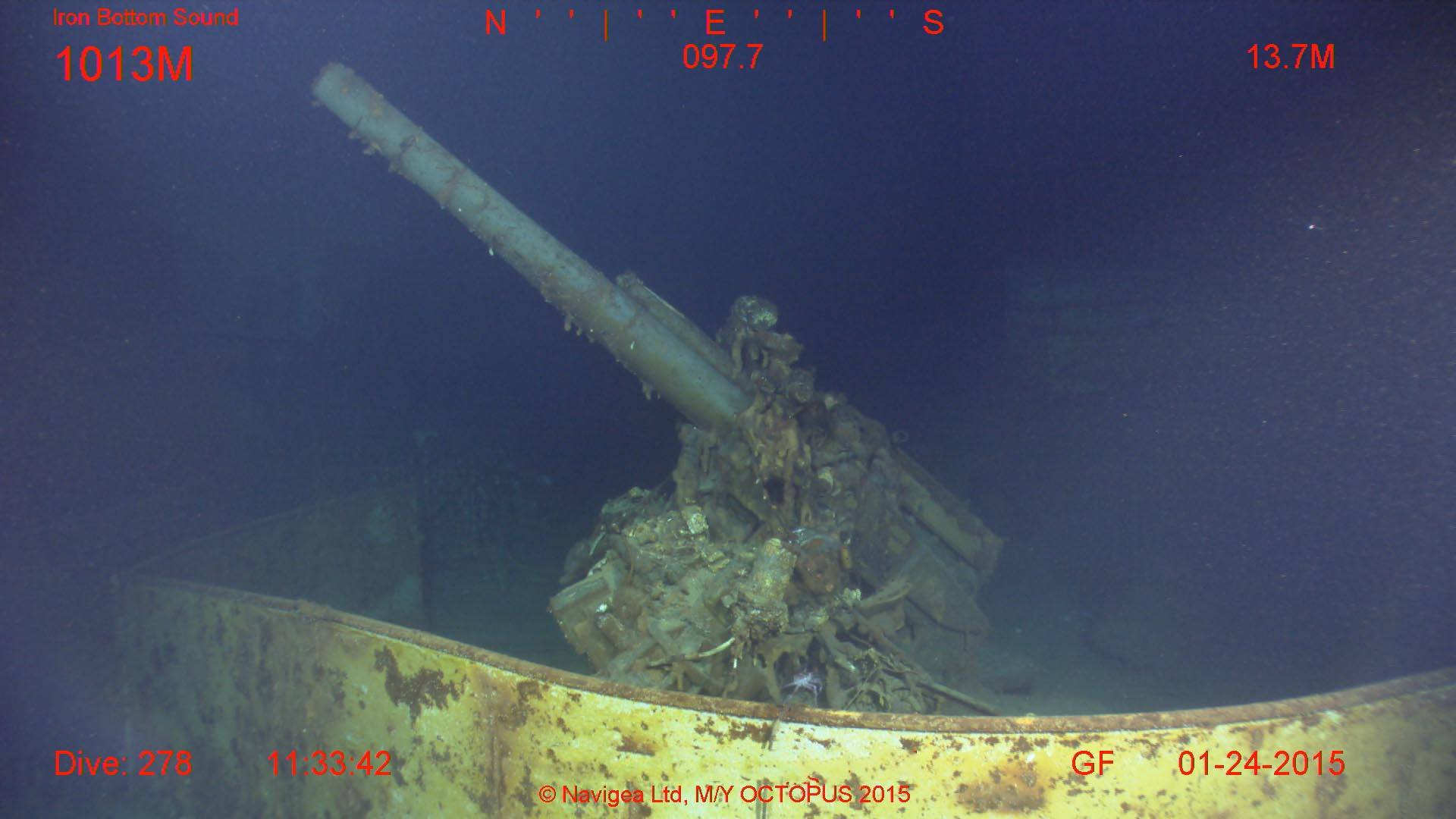 Gunner John Harris McKinney has been at rest with his shipmates at what today is known as Iron Bottom Sound nearly 3,500-feet beneath the surface. In January 2015, the Paul Allen-fund Research Vessel Petrel located and photographed the wreck of USS Vincennes (CA-44) and documented how she came to rest on the sea floor. One of the most poignant images captured by the Petrel crew showed one of Vincennes’ 5-inch guns still trained as if her crew were ready to send another round toward the enemy.