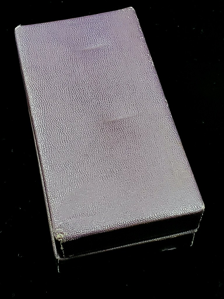 A few weeks ago, the Ohio Valley Military Society held its annual Show of Shows in Louisville, Kentucky. Unable to attend the show, we reached out to a few of our colleagues in the area who were attending to see if they could be on the lookout for the proper presentation box among the hundreds of tables of militaria. Within a few hours of making our request, a suitable box was found and shipped a few days later. With the medal placed in the box (along with the original ribbon and suspension), McKinney’s Purple Heart Medal has been returned to the state it was in nearly 80 years ago.