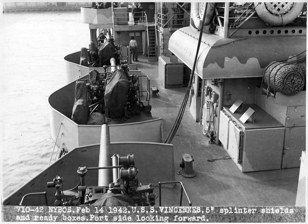 On February 12, 1941, Gunner McKinney reported aboard CA-44, USS Vincennes, and was assigned to one of the ship’s eight 5-inch gun mounts.