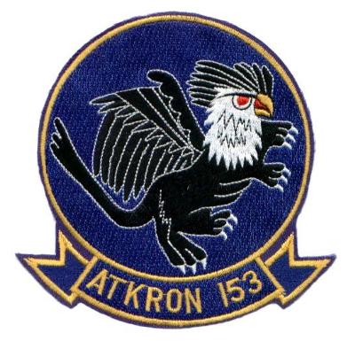 My contact at the U.S. Militaria Forum provided me with the insignia for VT-153 which added confusion; the “Gremlins” as they were known, did little to support my thought that the griffin on the box bore some significance, however, that isn’t where my trail ended. Following the lineage of each squadron, I found that VA-153 (“A” for attack squadron, the current designation for a carrier-based fixed wing bombing aircraft), which was disestablished in 1977, employed a very similar-looking griffin in their logo. The two griffin appearances is more than likely coincidental but it certainly leaves me with the idea that there is some connection.