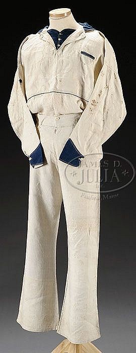This Civil War-vintage dress white uniform was recently listed with an estimated sale price of $3,000-$8,000. Note the blue cuffs and the blue flap (white white stars), a design that would persist well into the 20th Century (source: James D. Julia Auctions).