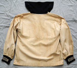 The rear of the Spanish-American War jumper shows the “sculpted” horizontal seam across the back (source: eBay image).