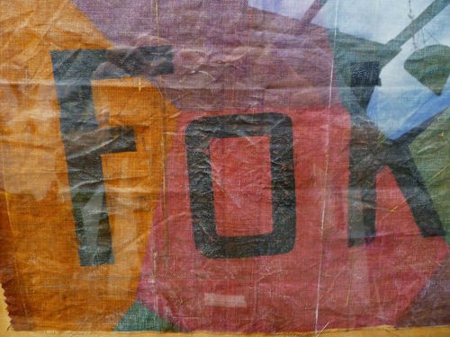 A section of fabric from a German WWI aircraft with the letters ‘Fok’ could originate from a Fokker war plane. The colorful pattern was typical of the camouflage painting of the war (source: eBay image).
