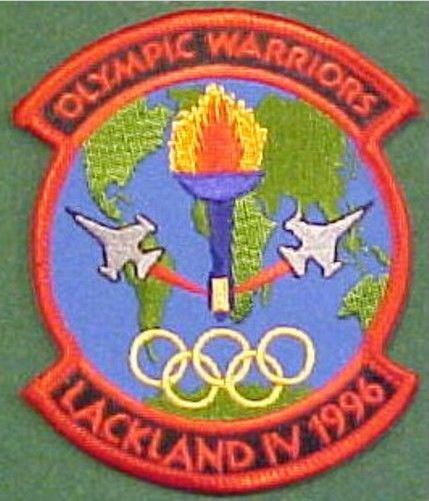 The Olympics-theme (the five interlocking rings) is oft-used in many military squadron patches such as this from Lackland, AFB. Perhaps this coincided with the 1996 Atlanta Games (source: eBay image).