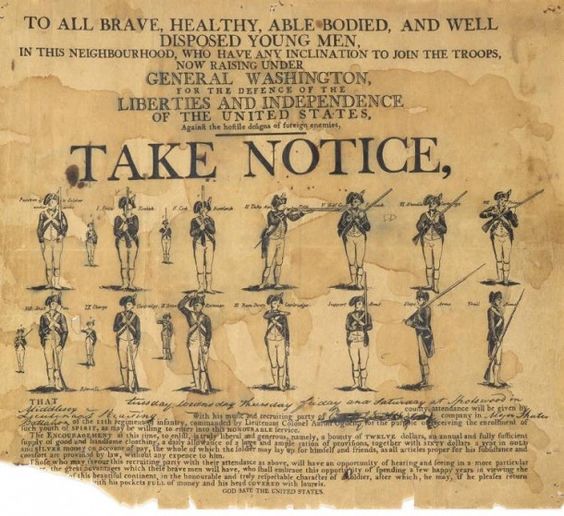 This is a beautiful example of a Revolutionary War broadside is recruiting soldiers for service in General Washington’s Army for Liberties and Service in the United States (source: ConnecticutHistory.org).