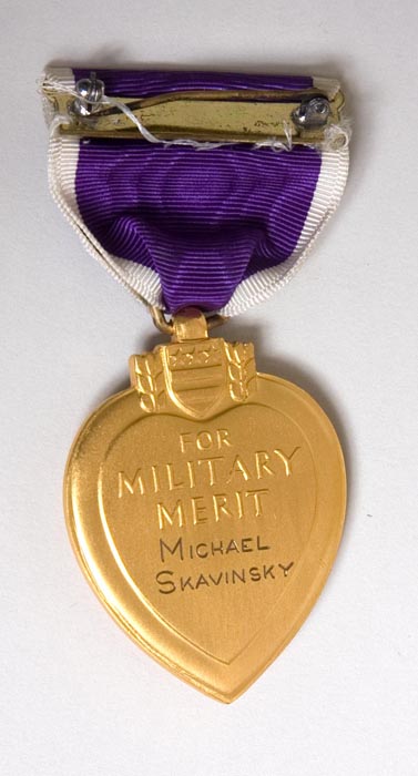 The back of Skavinsky’s Purple Heart shows the official engraving of his name (Source: PurpleHearts.net)