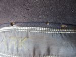 - A close-up of the USS Newark (C-1) tally and the stitching that attaches it to the hat. Moths have nipped away where the top is mated to the head band. Note the gold stitching of the ship name (Source: eBay image).