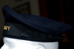 On April 1, 1963, the Navy unceremoniously brought about the end of the the dress blue cap, having been relegated to an item that sailors stuffed into their seabags, seldom seeing wear since being issued at bootcamp. Since the World War II, the white hat (lovingly referred to as the “Dixie Cup”) was popularized due to its ease of wear and that it could be rolled up and stowed into the back of the trousers, concealed beneath the jumper when in doors and not in use. With the vast numbers of wartime films depicting sailors in their dress whites and blues wearing their white hats cocked forward, aft or to the side, rolled edges, or hand-formed to a number or shapes, the versatility of the white hat (worn with all of the enlisted uniforms while the flat hat was only worn with dress and undress blues) drove the dress blue cap out of use. So many of the caps were made during WWII that the Navy supply system was still issuing them into the early 1960s.