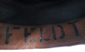 Stenciled to the back of the leather sweatband of the USS Seattle flat hat is the sailors name: Feldt (Source: eBay image).