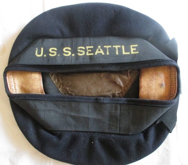 A flat hat from the USS Seattle, the former armored cruiser USS Washington, that dates from the interwar period of 1933-1940 (Source: eBay image).